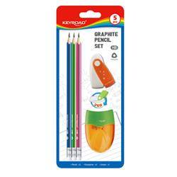 Temperówka KEYROAD Orange, plastikowa, pojedyncza, z gumką, blister, mix kolorów