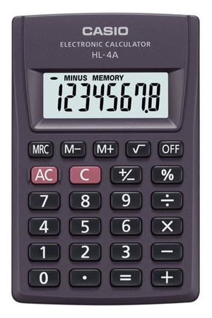 Kalkulator kieszonkowy CASIO HL-4A-B, 8-cyfrowy, 56x87mm, czarny