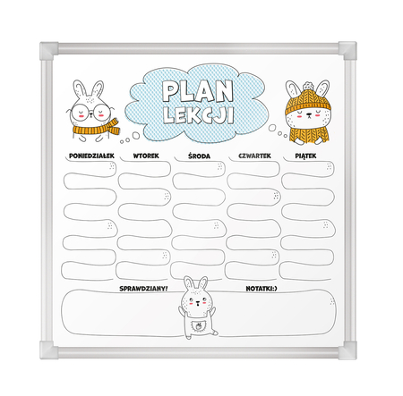 Tablica sucho-magnetyczna z nadrukiem Plan Lekcji 40x40 w ramie aluminowej A7