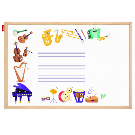 Tablica edukacyjna MemoBe, WHITEBOARDGAME: Music adventure!, nadruk WESOŁE INSTRUMENTY, rama drewniana, 60x40 cm
