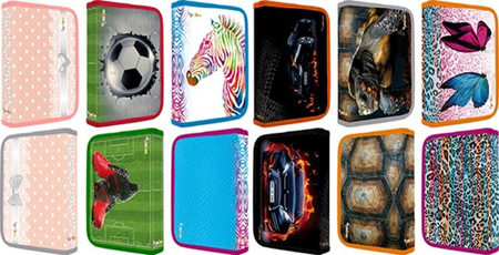 Piórnik szkolny GIMBOO z wyposażeniem, 1 komora, 2 przekładki, mix kolorów