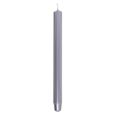 Świeca stołowa długa ryflowana DONAU HOME, lakierowana, 25x300 mm, 4 szt., srebrna