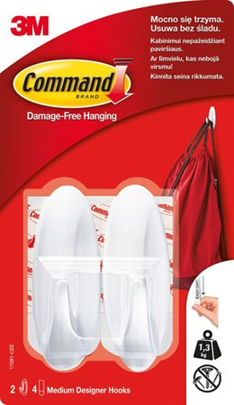 Haczyki wielokrotnego użytku COMMAND™ (W17081 B PL), wodoodporne, białe