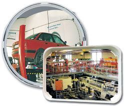Lustro wielofunkcyjne z białą ramą Ø 300 mm PAS  - Ułatwiają poruszanie się w fabrykach, magazynach i hurtowniach. Umożliwiają kontrolę w sklepach i warsztatach. Zwiększają bezpieczeństwo stanowisk pracy oraz kontrolę niewidocznych części maszyn, itp.