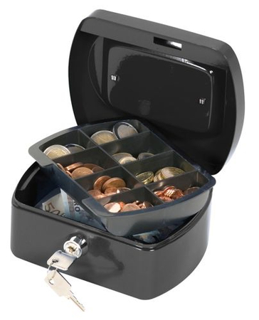 mała kasetka na pieniądze wyprodukowana z lakierowanego proszkowo metalu odpornego na zarysowania