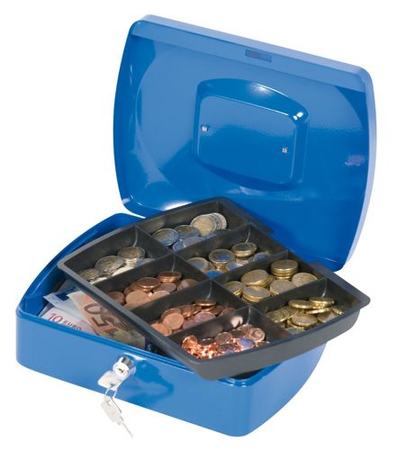 duża kasetka na pieniądze wyprodukowana z lakierowanego proszkowo metalu odpornego na zarysowania
